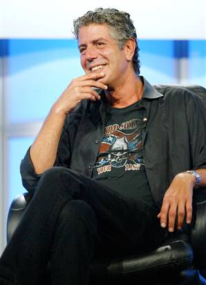 The host of Travel Channel show, Anthony Bourdain’s No Reservations (which has been a marathon today leading up to the premiere of the new season tonight), Bourdain travels the world in search of awesome food and drink in seedy underbelly sorts of places, which is always my speed. To make this even more compelling, his show comes with a parental advisory warning because not only does he have a bit of a potty mouth, he also tends to make pretty hilarious sex jokes. As if that weren’t enough in and of itself, the man also has a penchant for making high literature references AND poking fun of Rachel Ray’s super perky food/travel franchise on an almost episodic basis.