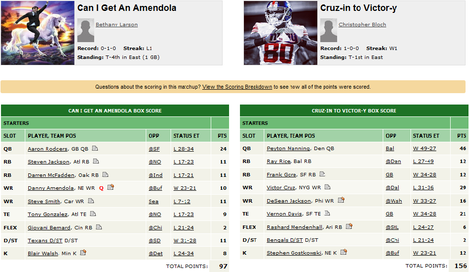 And here’s the deal: it’s not like my team sucked it up. They did respectably well. Peyton Manning just decided to be a beast.